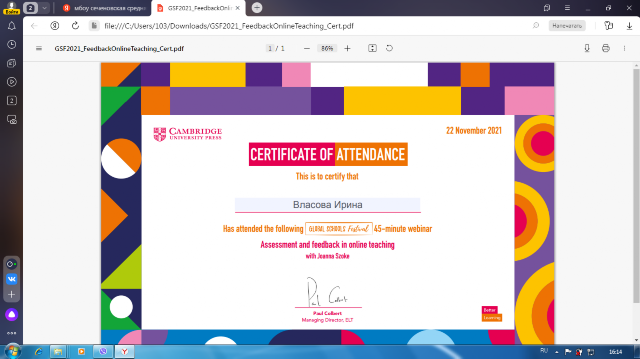 Стремлюсь повысить педагогическое мастерство через занятия на курсах повышения квалификации, семинарах и вебинарах.